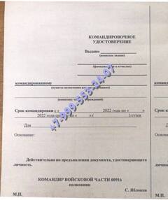 Заказать командировочное удостоверение военнослужащего в Ленинске-Кузнецком можно и по иным причинам, например, необходимо срочно ехать на учения или в зону боевых действий. В таком случае следует обращаться к руководству с заявлением. Если человек потерял, или испортил документы, он может обратиться в нашу компанию. Купить командировочное удостоверение военнослужащего с доставкой мы предлагаем недорого.